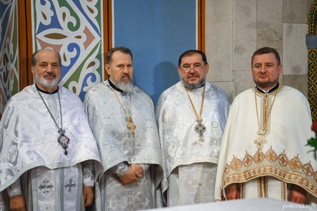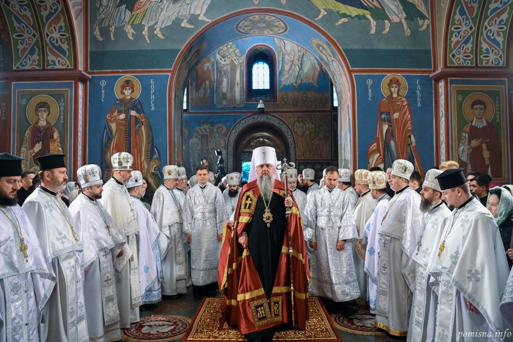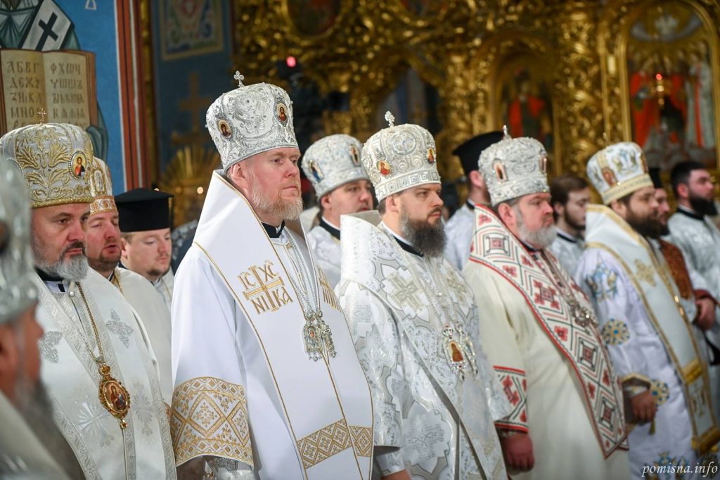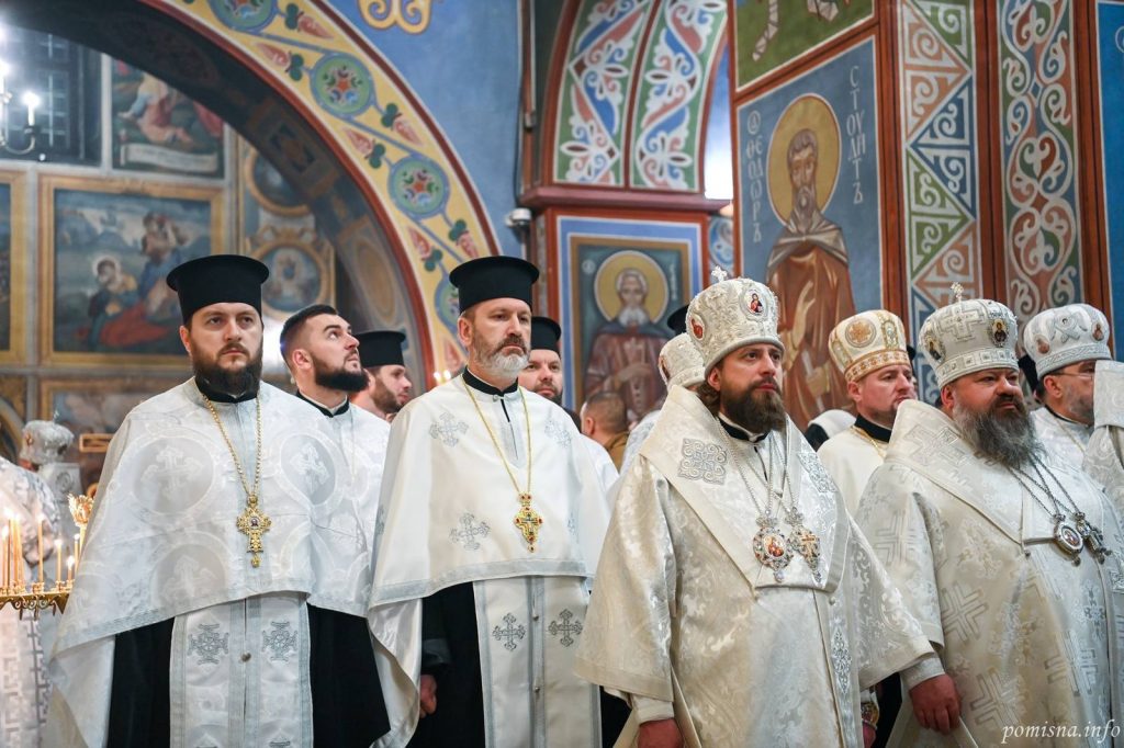 Предстоятелю автокефальної Української Православної Церкви співслужили єпископи, братія монастиря та численне запрошене духовенство. У святковому богослужінні взяв участь благочинний Святошинського і Голосіївського районів міста Києва, настоятель храму на честь ікони Божої Матері ”Живоносне Джерело” протоієрей Роман Музика.