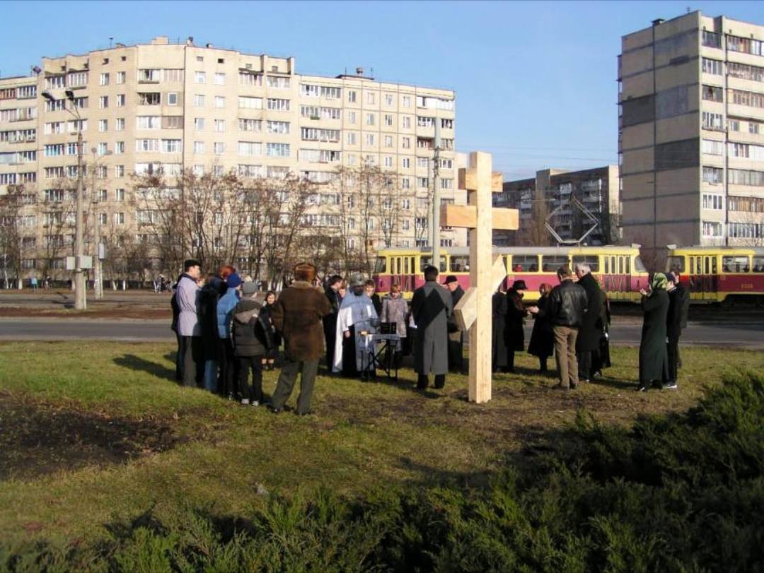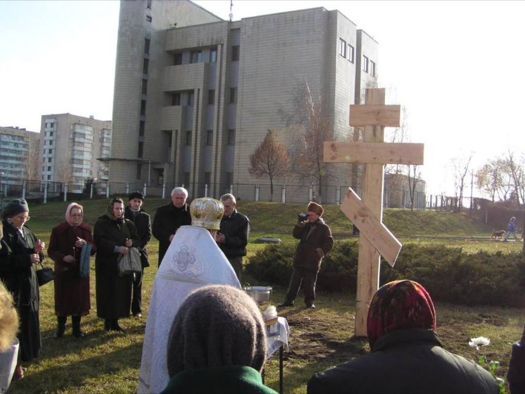 Віднайдено фото 2003 року. На них – церемонія відкриття одного із них, розташованого поблизу Братського кладовища, на місці однойменного села. Тоді ж відбувся і Чин освячення поклонного хреста, який звершив благочинний Святошинського і Голосіївського районів міста Києва, настоятель храму на честь ікони Божої Матері ”Живоносне Джерело” (1995-2020) протоієрей Валерій Семанцо (1955-2020).