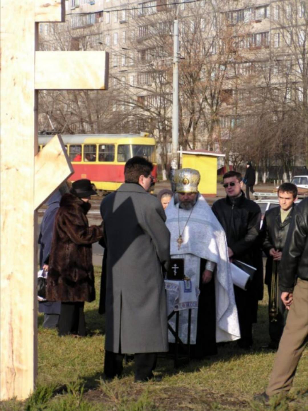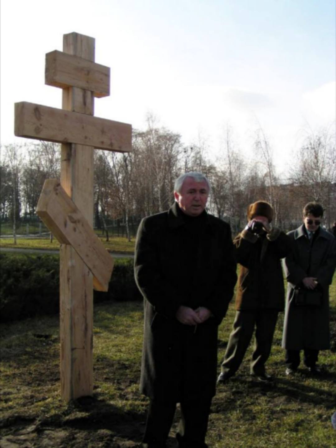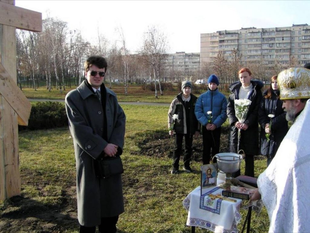 На світлинах (стоїть спиною до хреста) присутній якийсь чиновник чи меценат. Може хтось знає про нього?