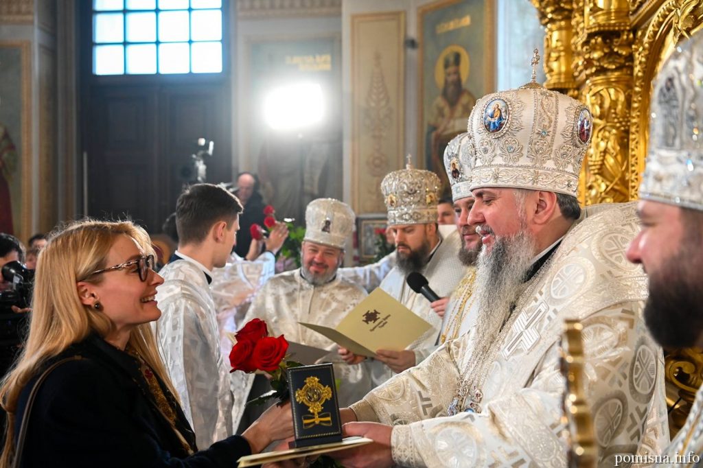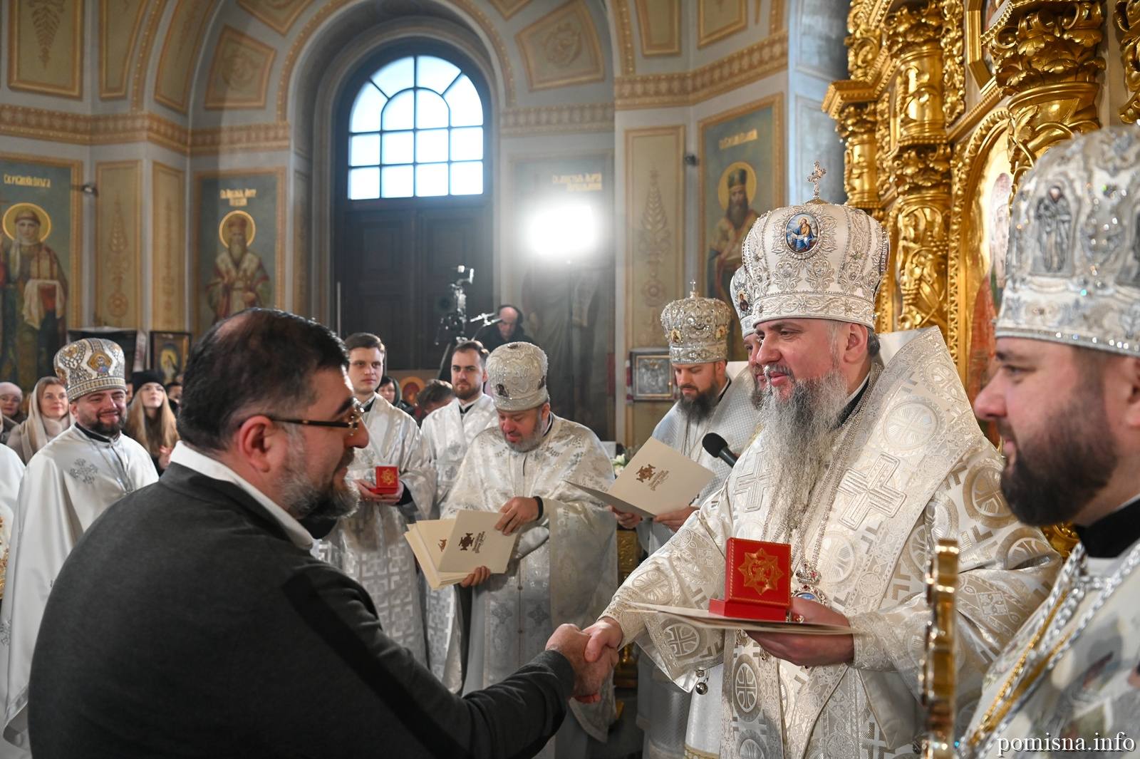 Наприкінці богослужіння Митрополит Епіфаній відзначив високими церковними нагородами українських воїнів – захисників Батьківщини та благодійників.