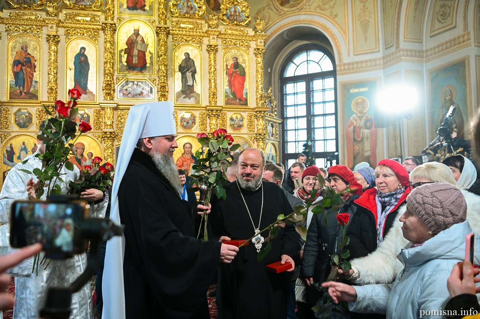 Предстоятелю автокефальної Української Православної Церкви співслужили митрополит Рівненський і Острозький Іларіон, митрополит Дніпровський і Січеславський Симеон, архієпископ Тернопільський і Бучацький Тихон, архієпископ Вишгородський Агапіт, настоятель парафії протоієрей Миколай Салабай, священнослужителі храму та запрошене духовенство. У богослужінні взяв участь благочинний Святошинського і Голосіївського районів міста Києва, настоятель храму на честь ікони Божої Матері ”Живоносне Джерело” протоієрей Роман Музика.