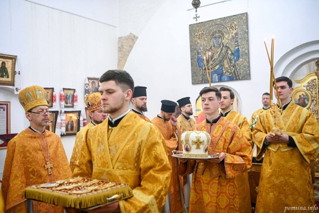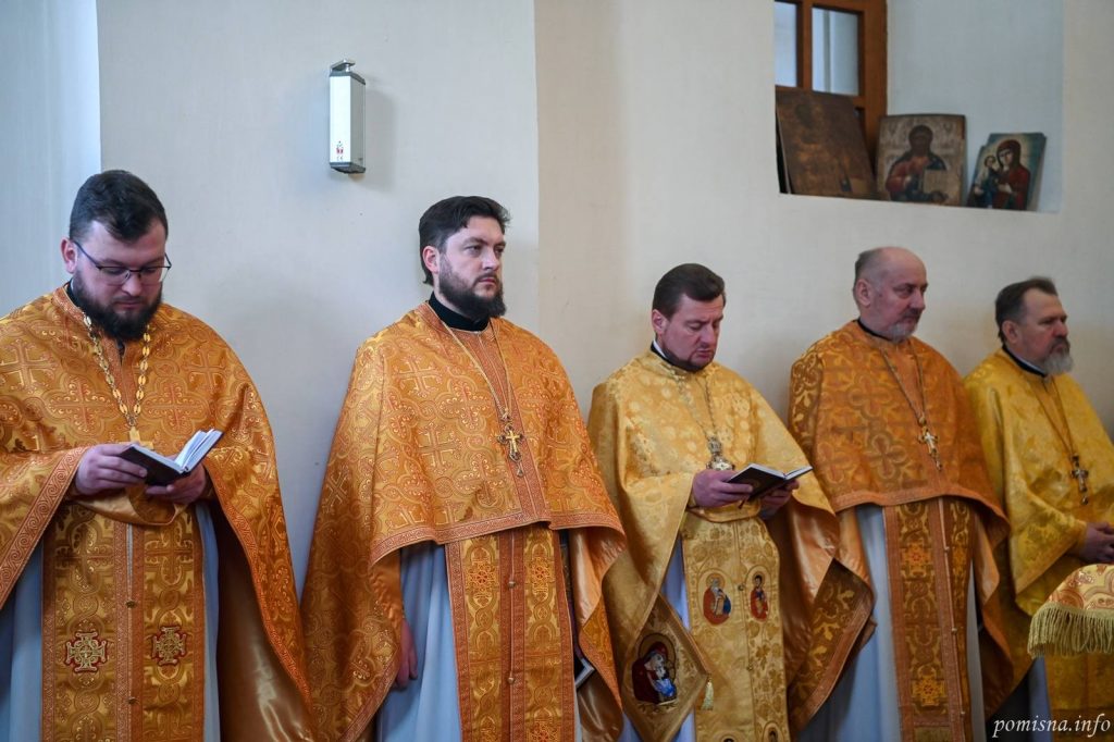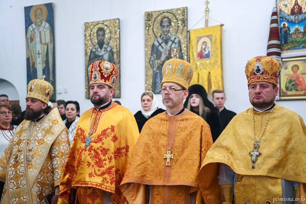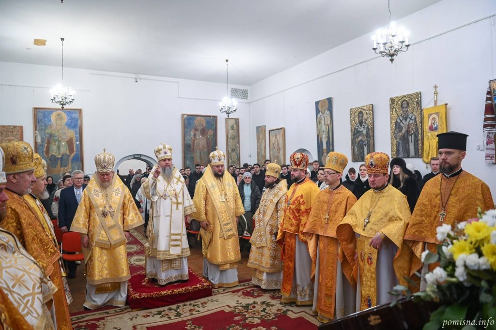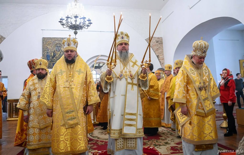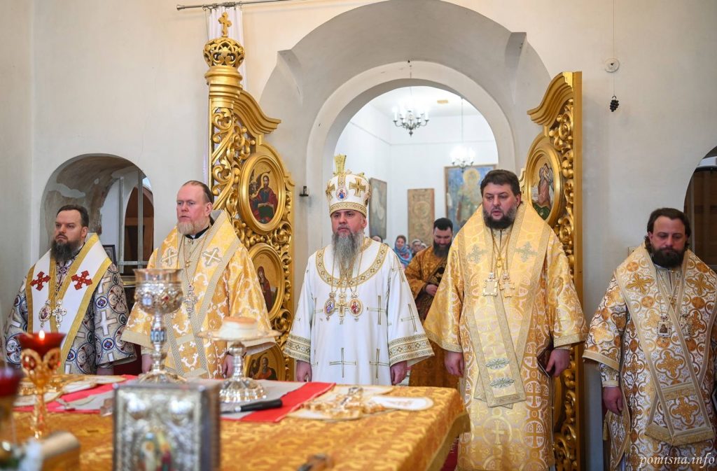 Предстоятелю автокефальної Української Православної Церкви співслужили митрополит Білоцерківський Євстратій, архієпископ Тернопільський і Бучацький Тихон, архієпископ Вишгородський Агапіт, єпископ Бориспільський Авраамій, настоятель Малої Софії протоієрей Петро Ландвитович, клірики храму та запрошене духовенство. У богослужінні взяв участь благочинний Святошинського і Голосіївського районів міста Києва, настоятель храму на честь ікони Божої Матері ”Живоносне Джерело” протоієрей Роман Музика.
