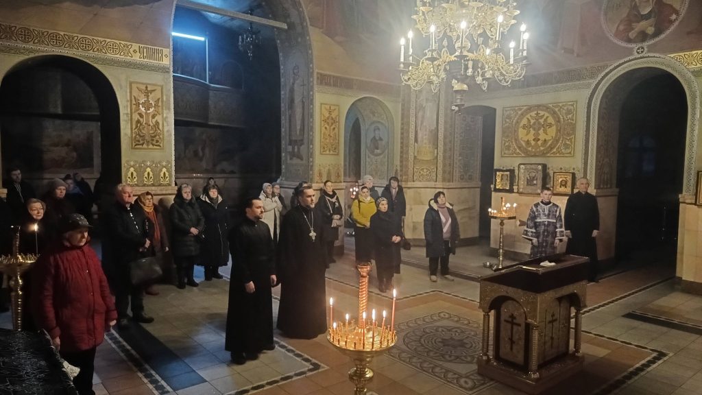 Богослужіння з нагоди початку Великого Посту. За особливим чином була відправлена Вечірня, на якій були виголошені молитви-благословіння початку постових днів. Згодом настоятель храму отець Роман промовив зворушливе слово про піст і про значення прощення в житті людини. Наостанок отець-настоятель, священнослужителі, причет та парафіяни громади прилучилися до стародавнього зворушливого Чину Прощення, що знаменує собою початок великопісних подвигів віруючих.