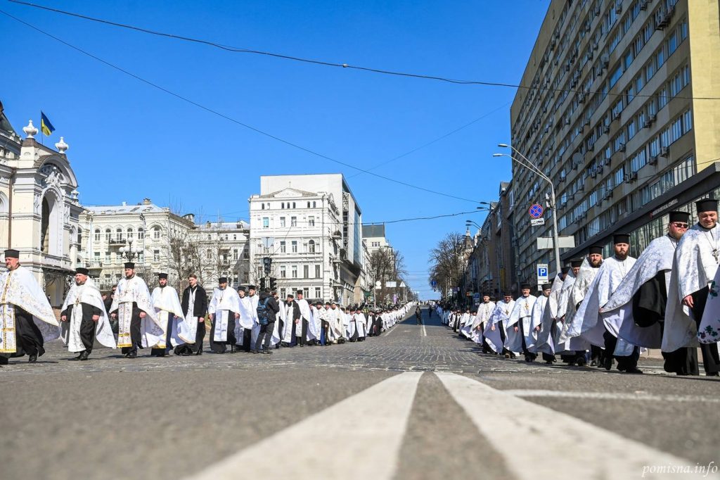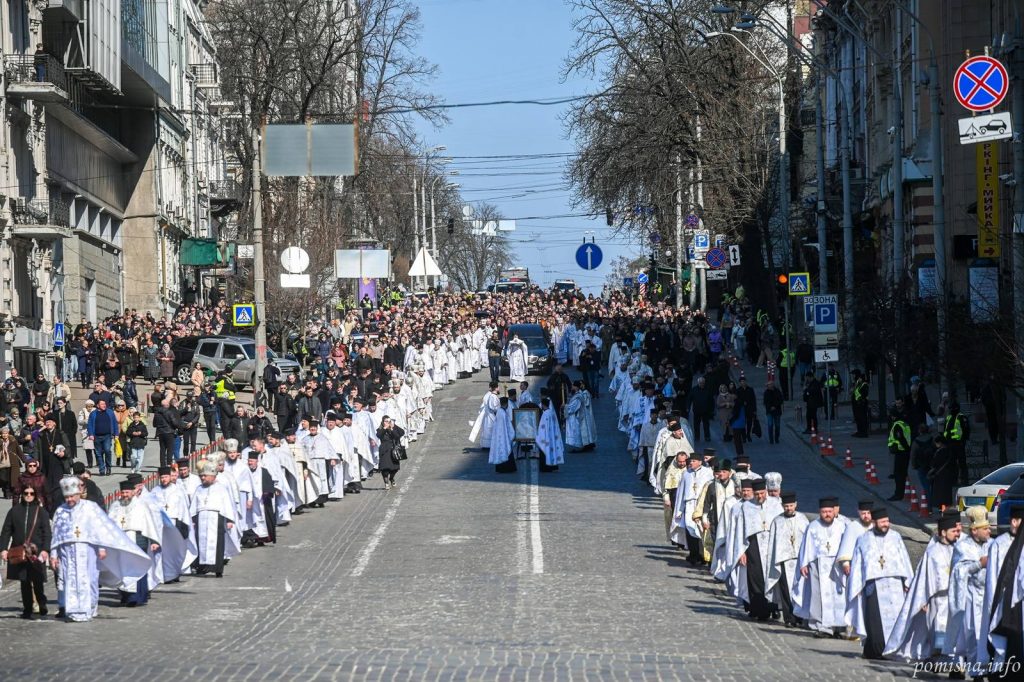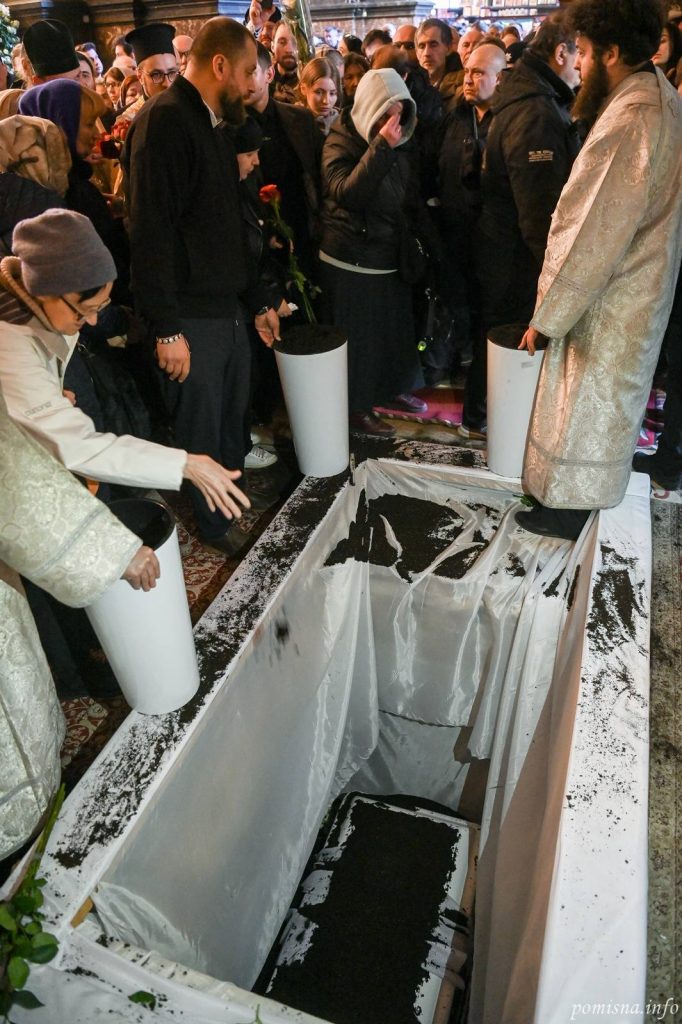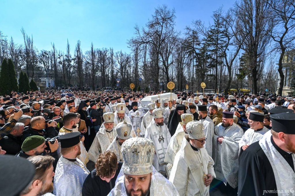 Після літургії до собору прибула жалобна процесія з тілом Святійшого Патріарха Філарета. Перед цим на Софійській площі столиці, де зупинялася процесія, було звершено літію за Його Святістю.