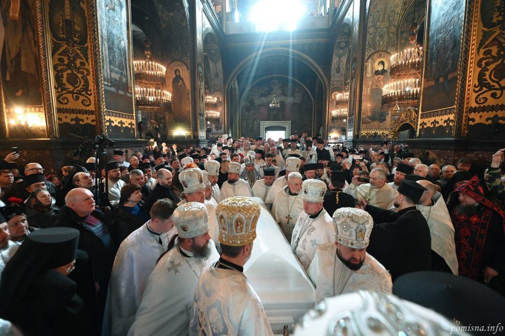 Разом із Предстоятелем Православної Церкви України молилися єпископи та священники з усієї України, духовенство собору на чолі з настоятелем – протоієреєм Борисом Табачеком, а також численні віряни, які прийшли попрощатися з Його Святістю.
