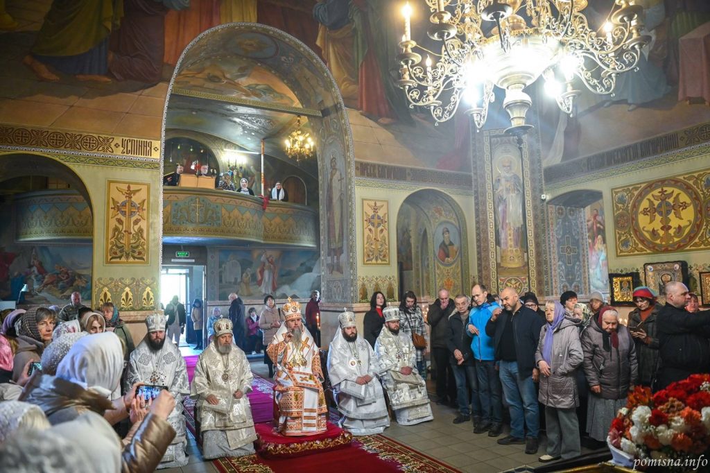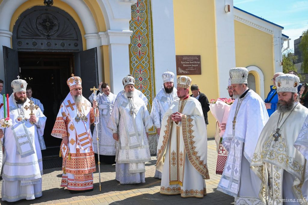 Предстоятелю помісної Української Православної Церкви за Божественною літургією співслужили архієпископ Луганський і Старобільський Лаврентій, єпископ Васильківський Єфрем, єпископ Ірпінський Феодосій, єпископ Макарівський Рафаїл, настоятель храму протоієрей Роман Музика, клір храму та запрошене духовенство.