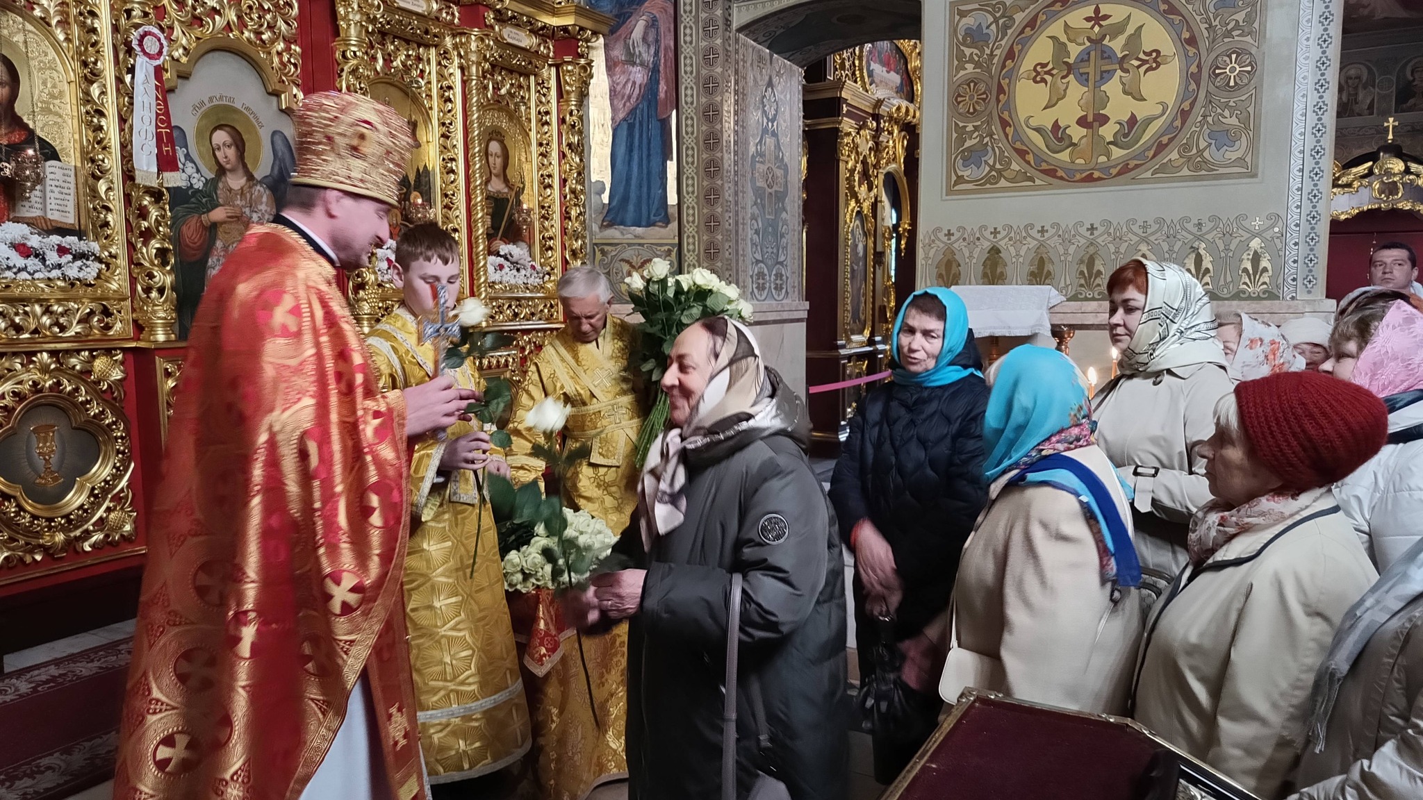 У день свята настоятель храму на честь ікони Божої Матері ”Живоносне Джерело” протоієрей Роман Музика привітав усіх парафіянок зі світлим святом, поблагословив і подарував квіти.