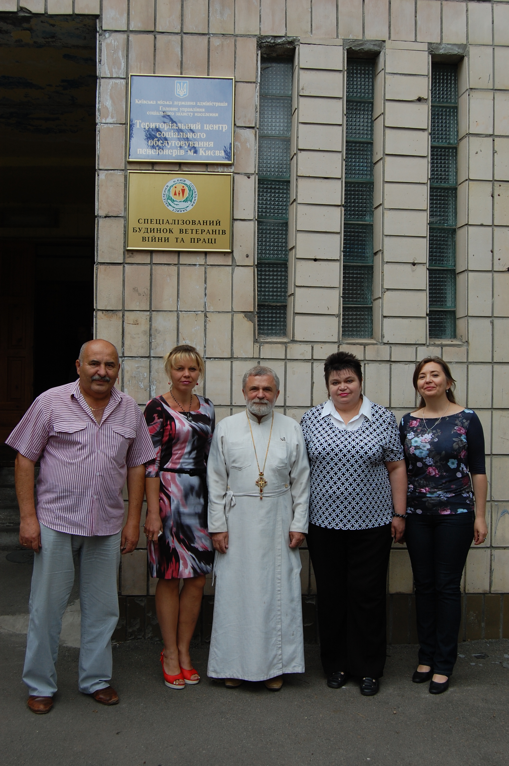 Настоятеля тепло зустріла директор будинку для ветеранів війни і праці Листопад Н.С., завгосп Мартиненко М.В., старша медсестра Шпаченко Н.В.. Обговоривши робочі питання настоятель та директор будинку розпочали у актовій залі офіційну частину.